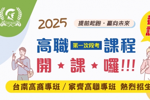 全面啟動 × 專校進度 × 小班教學 台南最紮實的高職學科課程規劃 搶先掌握新課綱學習脈動金牌帶您一路領先 限額12人×精緻小班制教學×堅持絕佳品質 專業師資授課× 最新課綱指導× 段考題型...