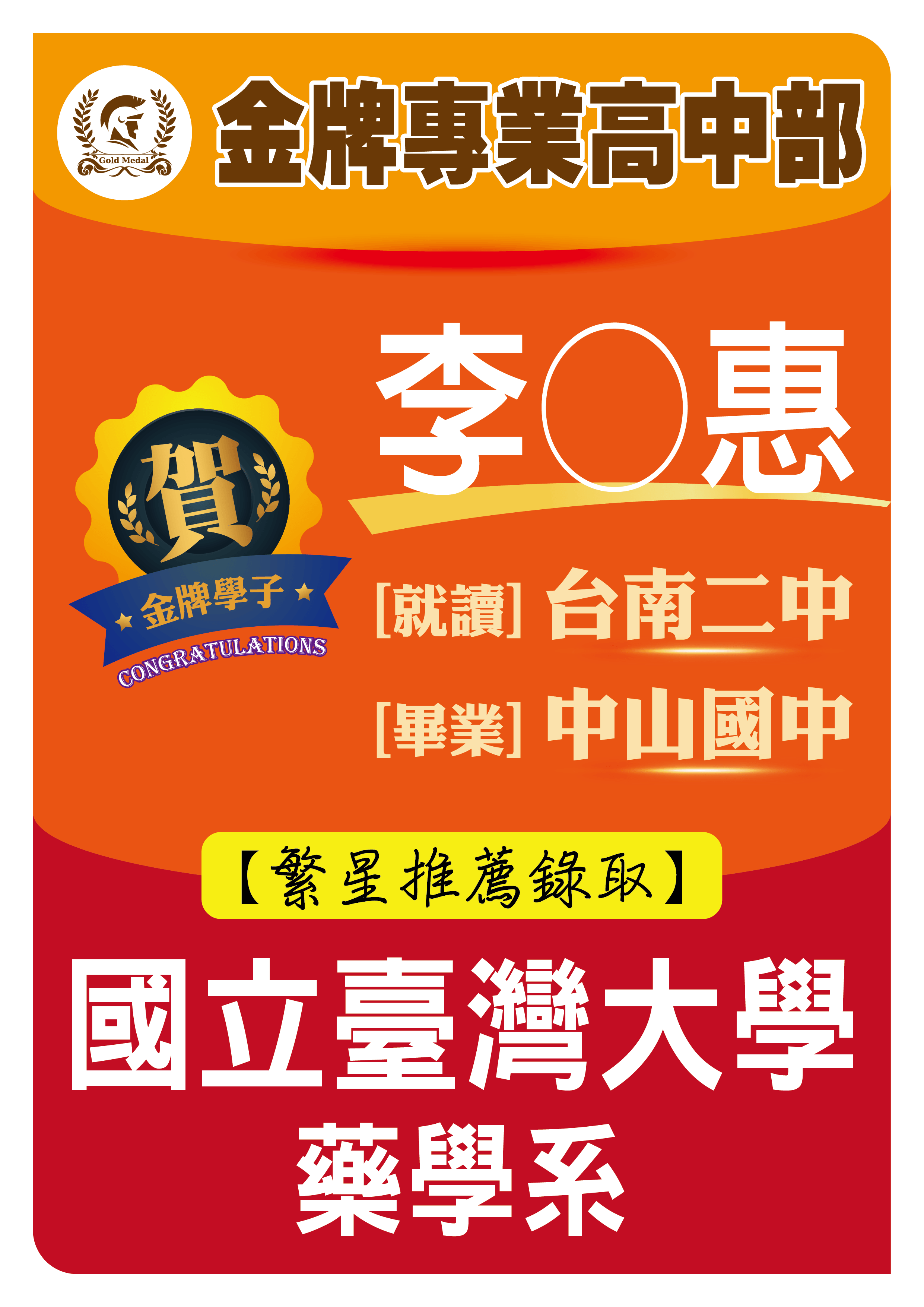 2023升大學繁星推薦榜單(二中-李文惠)